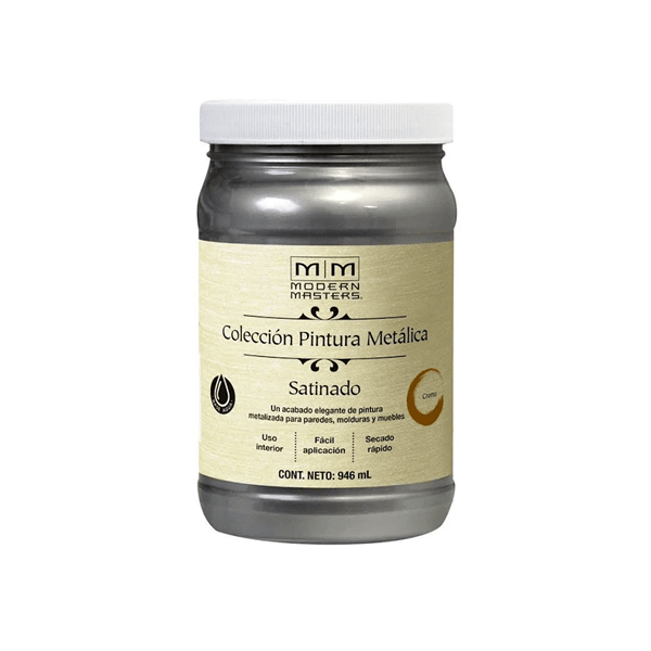 Las Pinturas Metálicas Satinadas de la línea Modern Masters® son base agua y de secado rápido. Las pinturas de esta colección combinan mica y pigmentos tradicionales para crear la paleta de nueve colores satinados, que son inalterables, no se decoloran y están disponibles por primera vez en pintura base agua.